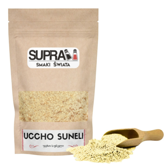 Podróżuj kulinarnym szlakiem przez Gruzję z naszą przyprawą UCCHO SUNELI. “Obca przyprawa”, bo tak można tłumaczyć tą nazwę, to zmielone nasiona kozieradki błękitnej. Wyjątkowy aromat, nuty przypominające imbir i cynamon oraz słodkawy smak kozieradki błękitnej przeniosą Cię do serca gruzińskiej kuchni, otwierając przed Tobą furtkę do świata intensywnych smaków i aromatów. Jest to charakterystyczna gruzińska przyprawa, która nadaje potrawom głęboki smak i charakterystyczną nutę orientalnego smaku. Przyprawa UCCHO SUNELI to kwintesencja smaku Gruzji, oparta na jednym głównym składniku - jest to jedna z najczęściej stosowanych przypraw w kuchni Kaukazu.